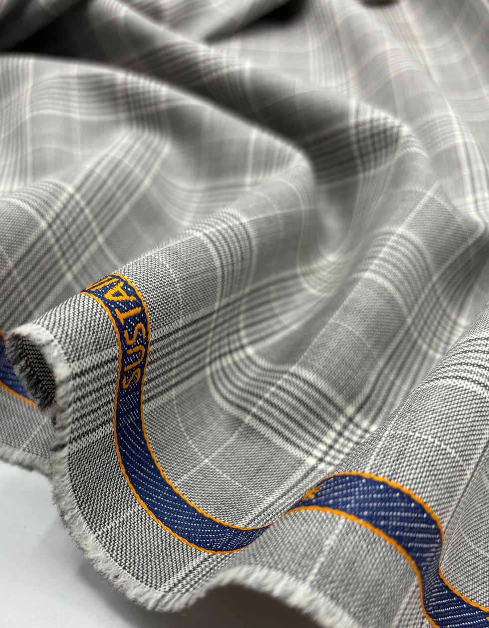 Grey Check MILLENNIAL Sustainable Wool Textile Fabric By Dormeuil - 4.0 Meters