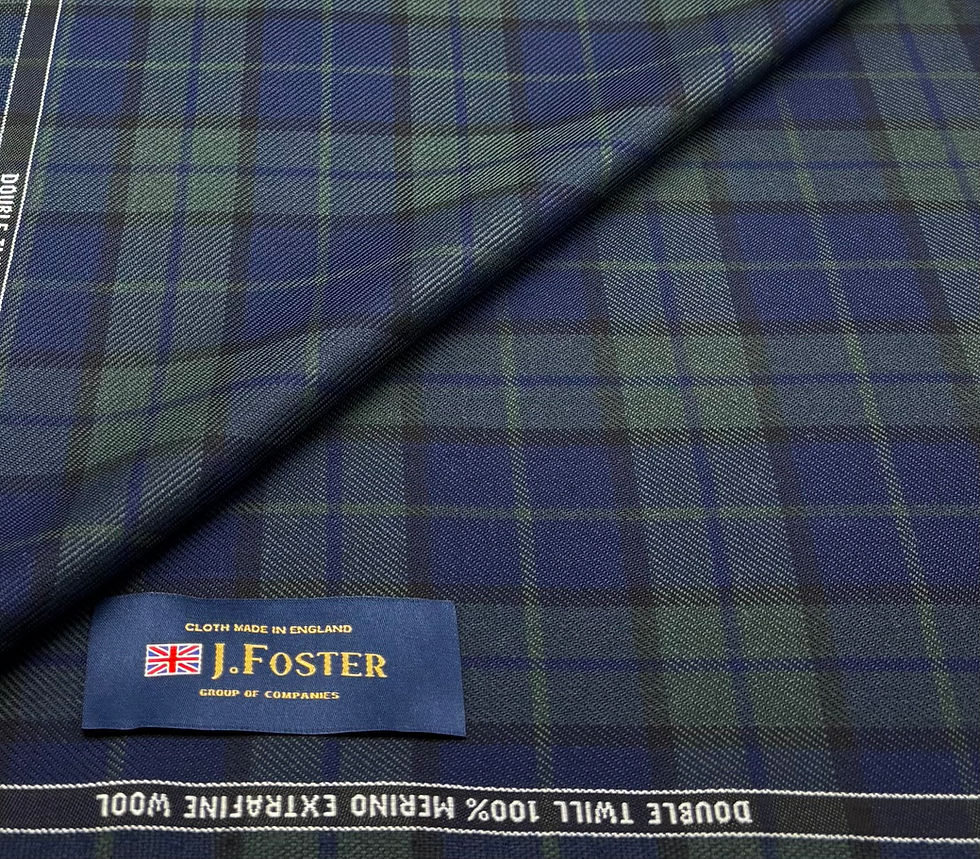 Green & Blue Black Watch Heavy Double Twill All Wool Fabric - 4.50 Meters
